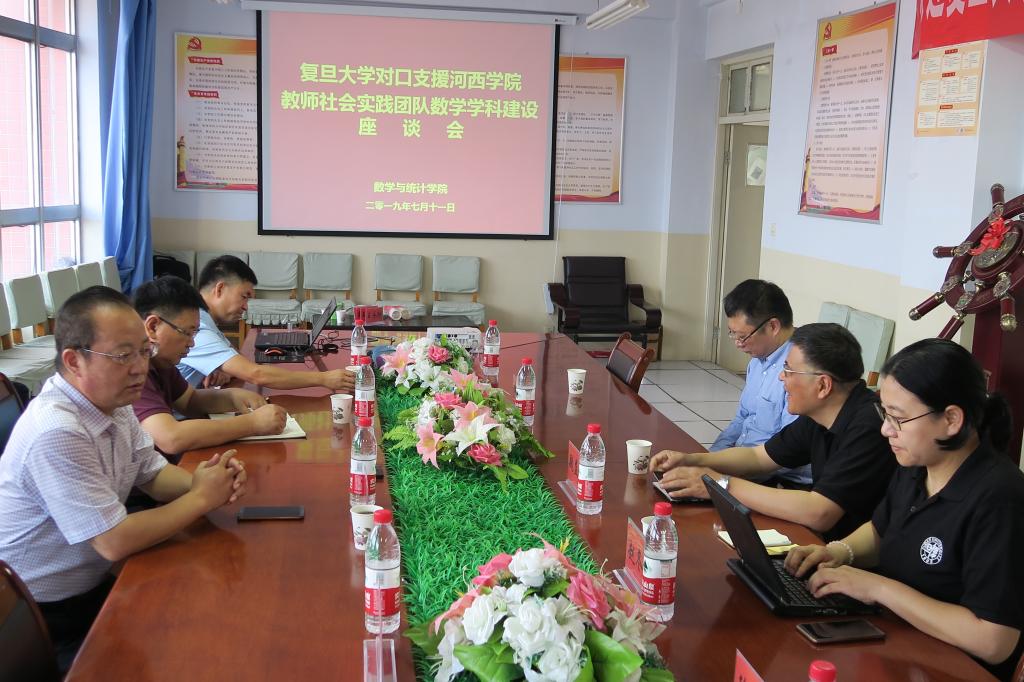 上午,在数学与统计公司会议室召开了复旦大学对口支援3377体育网站网页数学团队建设座谈会。复旦大学数学科学公司魏益民教授、徐惠平副教授、赵冬华副教授、李荣敏副教授,公司党委常委、教务处处长赵柱教授出席座谈会,数学与统计公司领导及部分教师参加了座谈会。会议由数学与统计公司经理普昭年教授主持。