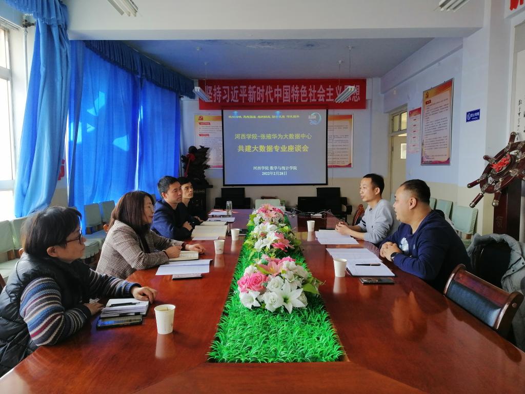 为深化校企合作,加快应用型专业建设,助推公司党建五大工程,2月28日下午,数学与统计公司邀请张掖大数据产业园及华为大数据中心蔺瑞沣经理和禅凯工程师到校开展数据科学与大数据技术专业共建工作座谈会。针对该专业的人才培养思路和方案进行探讨,双方就人才培养、资源共享和实习基地建设等方面达成共识。座谈会由公司经理郭育红教授主持,公司其他领导、办公室和大数据专业班主任老师共同参加座谈。