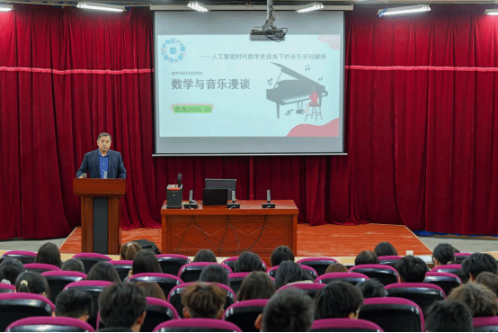 讲座伊始,李海老师以数学史为线索,深入剖析了毕达哥拉斯音阶比例、中世纪记谱法、声学模型,以及现代乐器声波方程等经典案例,巧妙揭示了音乐背后隐藏的数理奥秘。在实践演示环节,李海老师生动阐释了傅里叶变换、马尔科夫链等数学原理与人工智能的深度融合,这些前沿知识极大地开阔了同学们的视野,点燃了他们探索数学的热情。讲座结束后,同学们积极与李海老师互动交流,纷纷表示收获颇丰,不仅对数学知识有了更为深刻的理解,还对数学的应用前景与未来发展满怀期待。