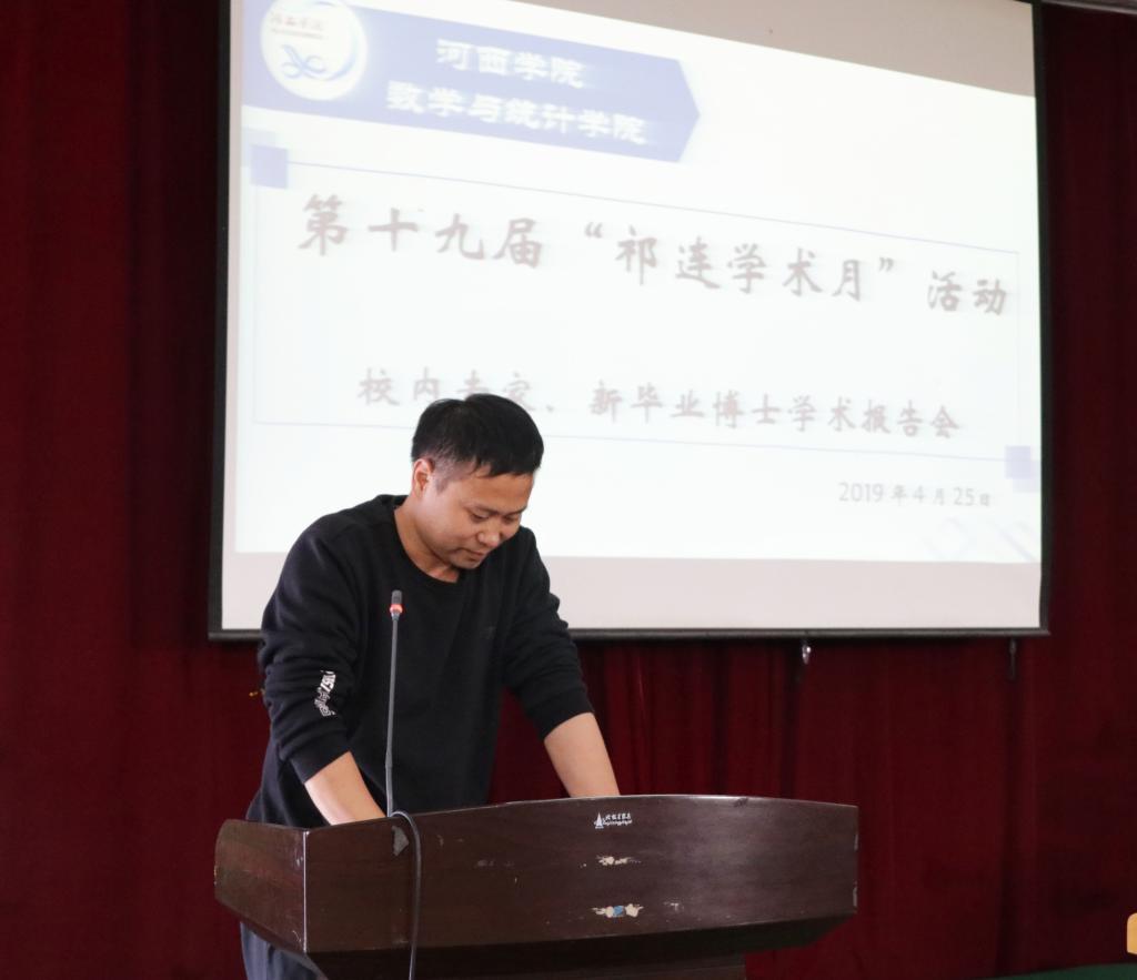 数学与统计公司于2019年4月25日下4:30在学术二厅举行了数学与统计公司第十九届“学术活动月”——校内专家刘群教授、新毕业博士李登辉副教授学术报告会,公司全体教师和数学与应用数学专业、金融数学专业员工200多人参加了报告会,报告会由公司王学忠副教授主持。