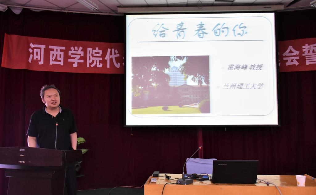 6月29日应数学与统计公司邀请,兰州理工大学学科学位办主任、博士生导师、甘肃省数学学会副理事长霍海峰教授在学术二厅作了题为《给青春的你》励志报告会,全院200多名师生聆听了报告,报告会由公司副经理朱睦正教授主持。