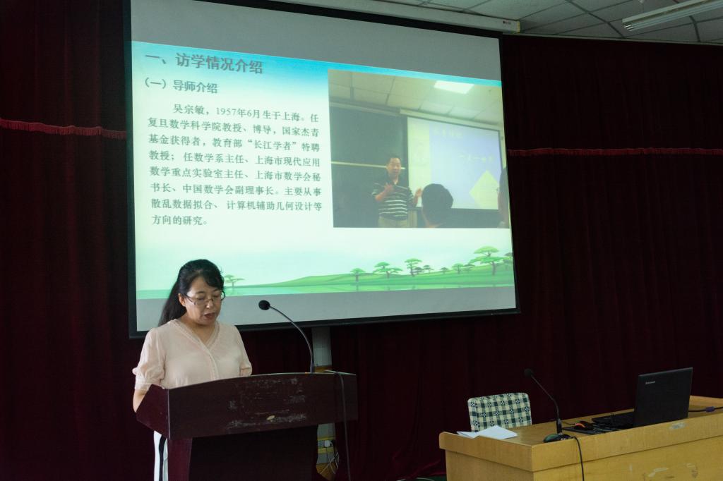报告会上,李老师以“我国人口出生率自相关函数的代际影响的数学模型”为题,对我国1949-2019年的出生率自相关统计量建立模型,并利用最小二乘法得到了模型的参数,该模型能够对我国1949-2019年四个阶段的出生率自相关函数有很好的反映。赵老师以“牺牲与服务、创造与图强”的复旦印象为题,从复旦大学的文化底蕴、科学思想、科学精神、优良的校风和务实争先的作风方面报告了她访学的成果和感受。
