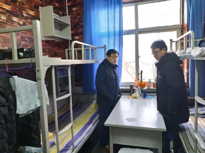 李拓书记认真询问了寝室暖气的散热情况,叮嘱同学们如果暖气不热要及时联系宿管人员帮忙解决,避免因宿舍过冷而感冒。告诉同学们冬天到了,要注意宿舍卫生,开窗透气,使寝室环境整洁干净。在寝室环境温暖舒适的基础上,要努力学习,宿舍内要营造良好的学习气氛,做文明老员工,为今后更好的适应社会环境打下坚实的基础。要求相关部门高度重视,集中力量加强员工宿舍管理工作。