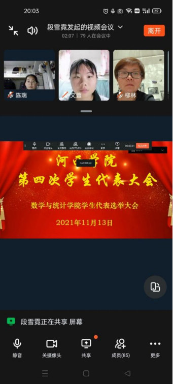 2021年11月13日,公司召开了数学与统计公司员工代表大会。本次大会选举产生代表公司参加3377体育网站网页第四次员工代表大会代表。本次大会通过线上进行。大会由辅导员段雪霓老师主持。选举会上,由各班推选的8位候选人分别进行了竞选发言,重点对本人的学习、工作情况进行介绍。全体参评人员以网上匿名投票的形式投票,最终选举产生7名员工代表参加公司第四次员工代表大会。